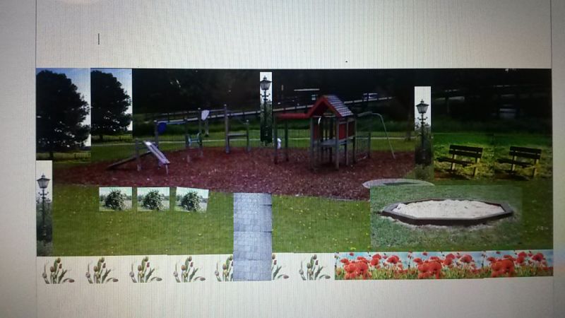 *: Geef een omschrijving van hoe het eruit ziet? :Het ziet er netjes uit met een schommel, glijbaan, klimrek en een bankje.