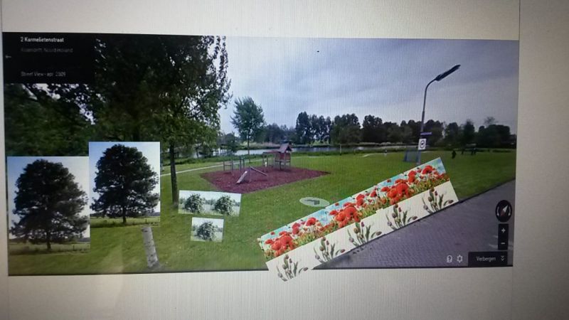 *: Welk materiaal is gebruikt ?: Groen, tegels, metaal en nog meer maar dat weet ik niet precies.